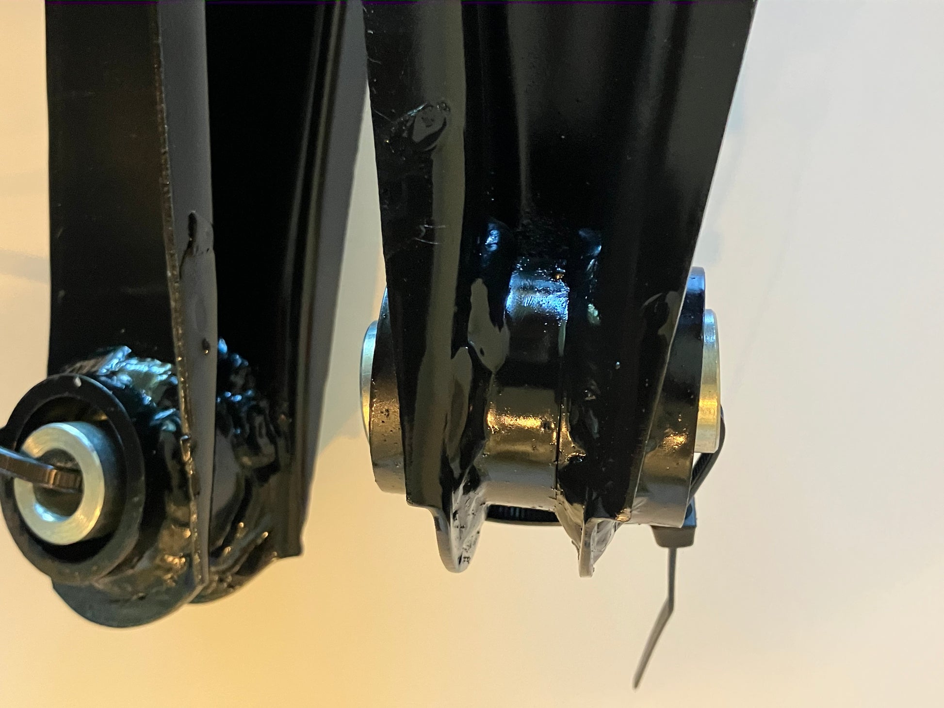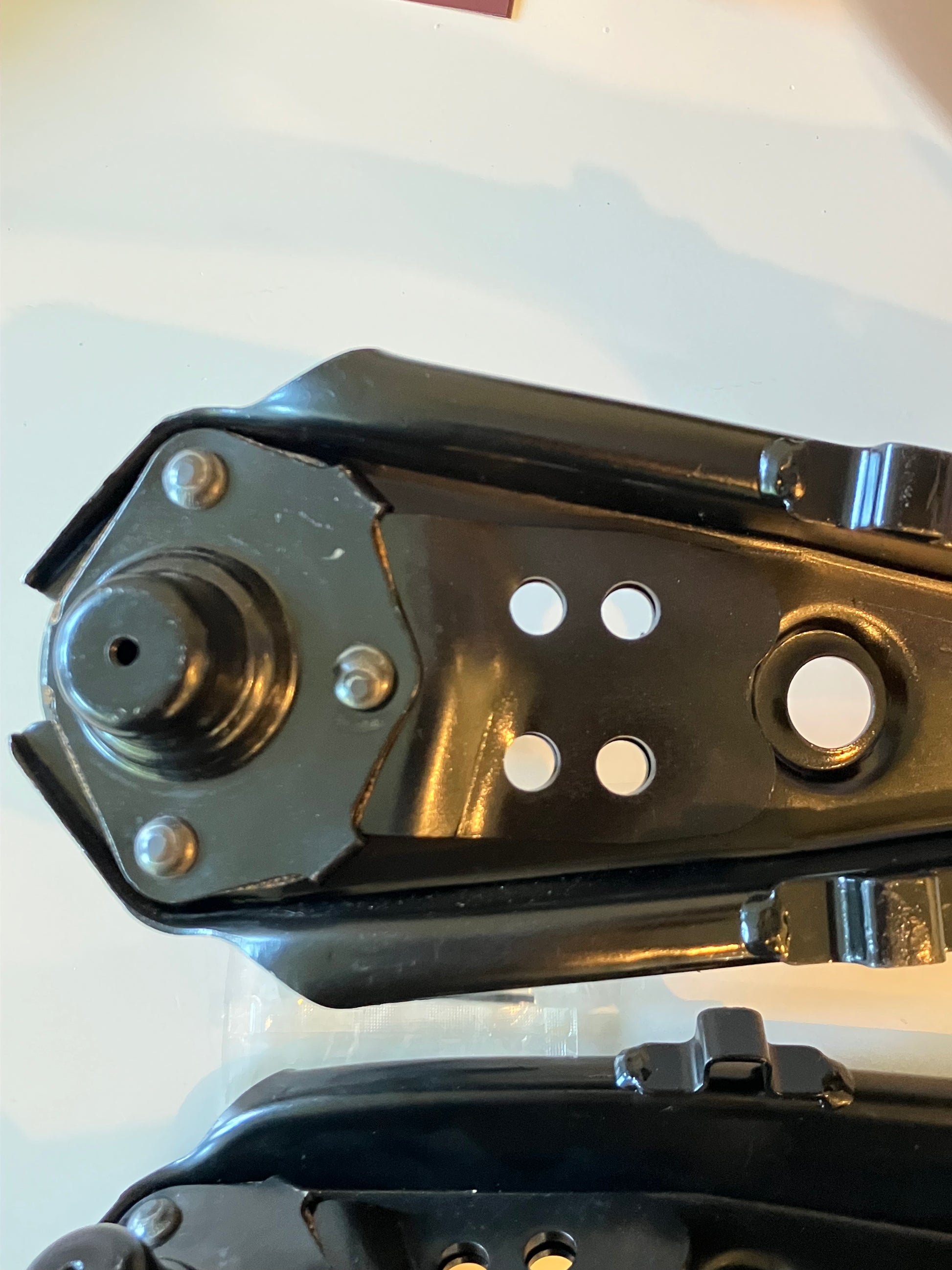These control arms are a slightly modified version of the early mustang/comet/falcon lower control arms. A roller bearing has been added at the mounting point allowing them to move up and down, laterally and also allows for a small amount of twisting. This creates smoother handling.